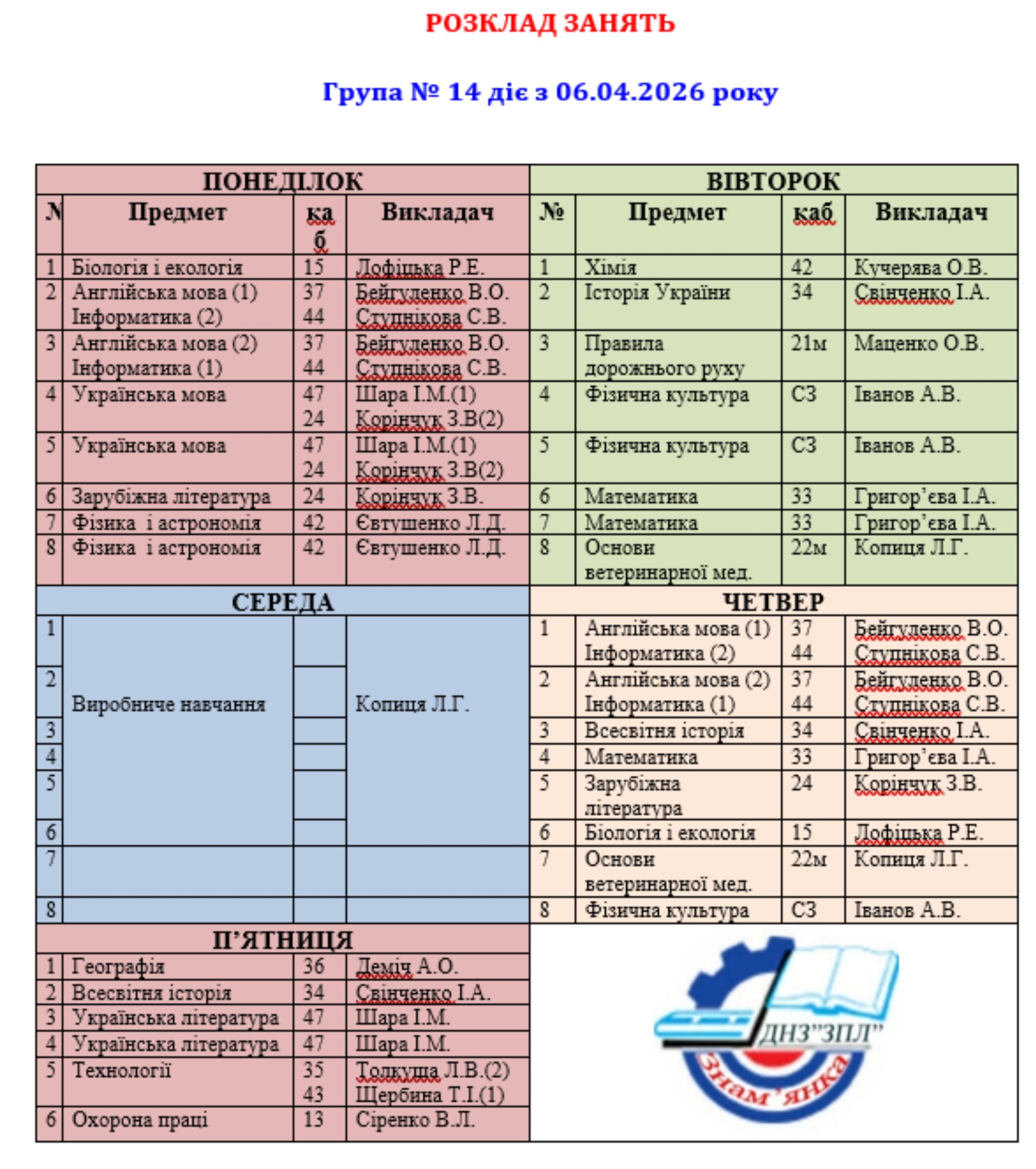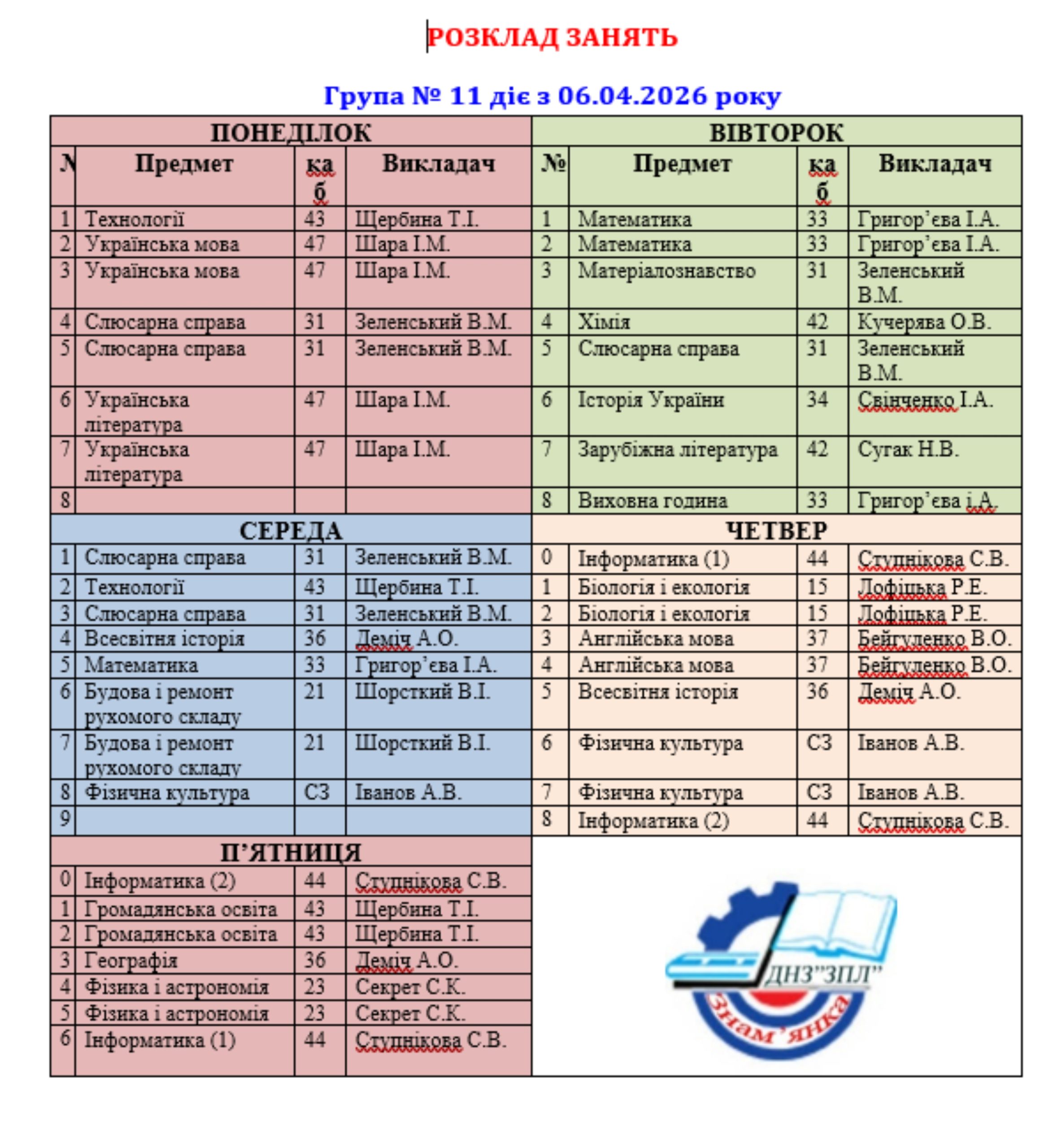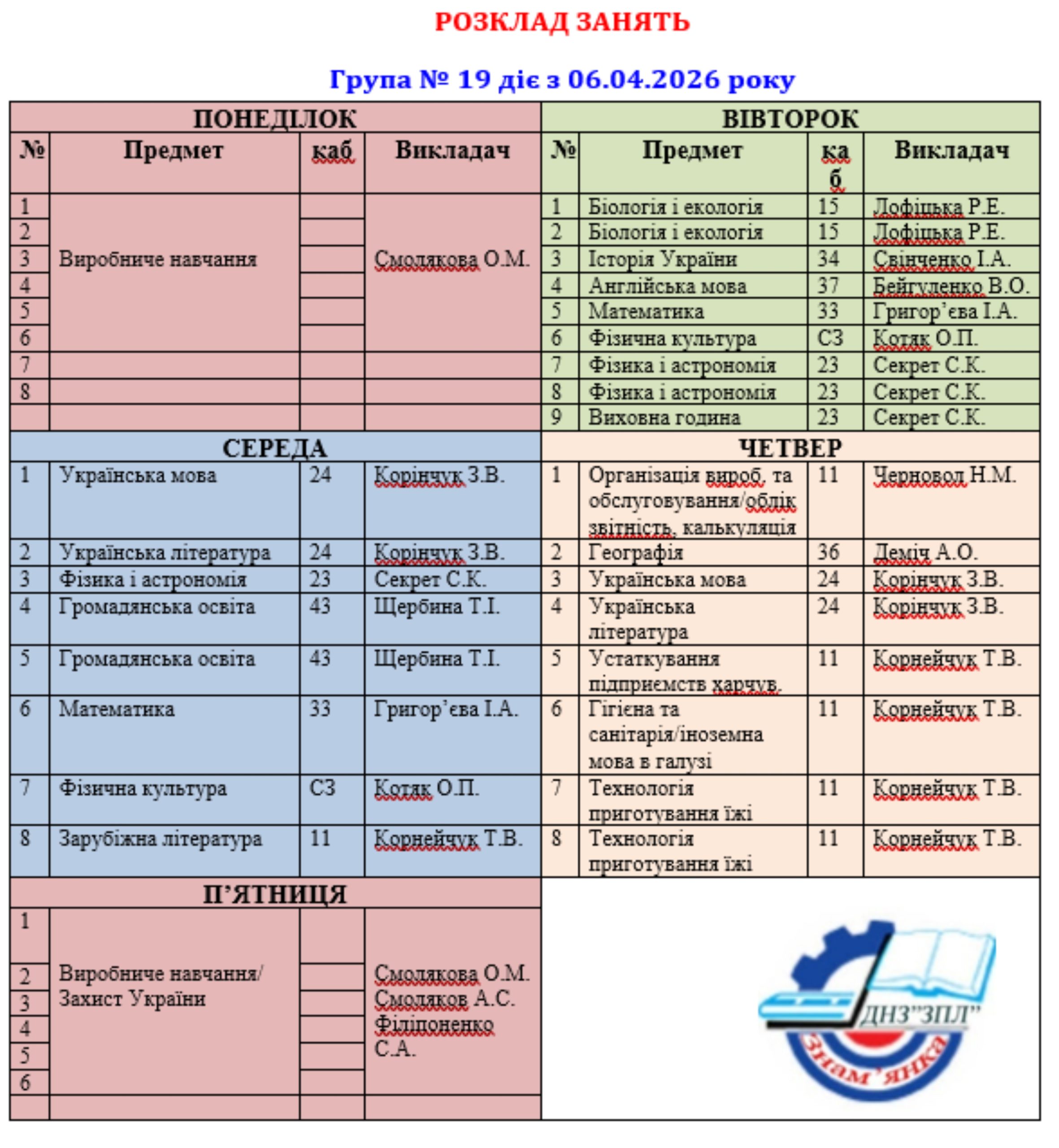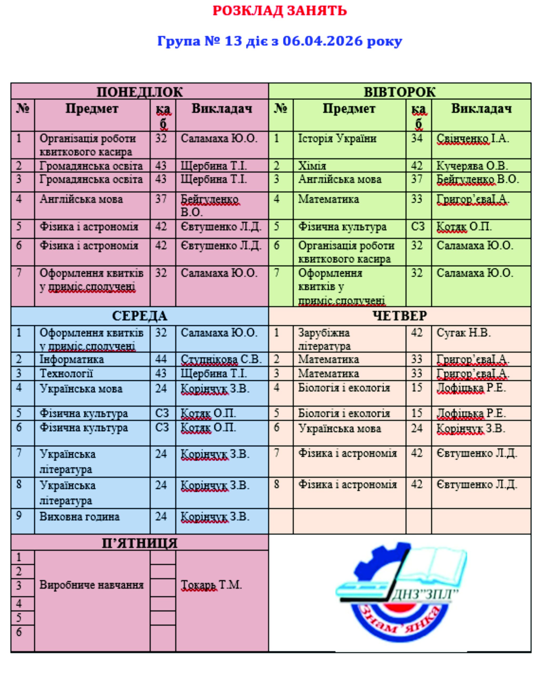 Розклад занять ГРУПА 18 ГРУПА 11Завантажити ГРУПА 13Завантажити ГРУПА 14Завантажити ГРУПА 18Завантажити ГРУПА 19Завантажити ГРУПА 21Завантажити ГРУПА 23Завантажити ГРУПА 24Завантажити ГРУПА 29Завантажити ГРУПА 31Завантажити ГРУПА 32Завантажити ГРУПА 33Завантажити ГРУПА 34Завантажити ГРУПА 39Завантажити ГРУПА 113Завантажити ГРУПА 111Завантажити