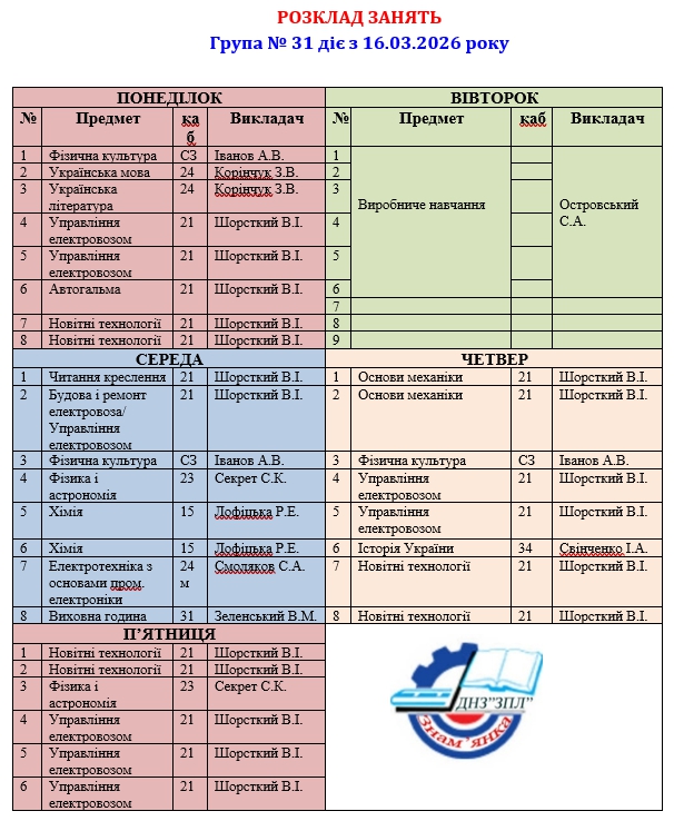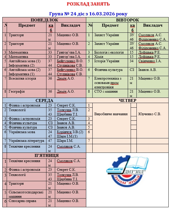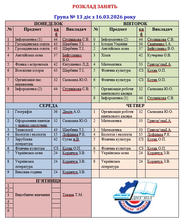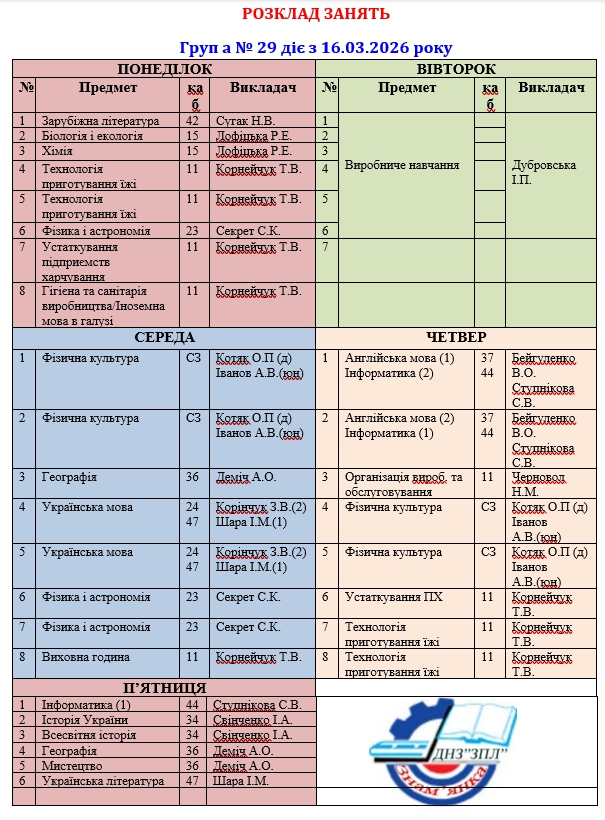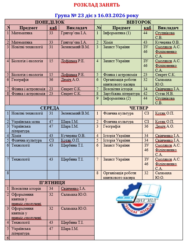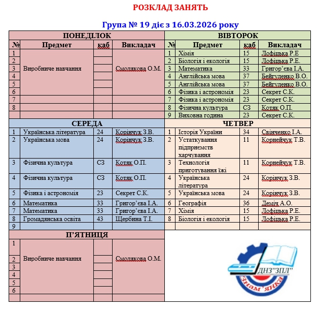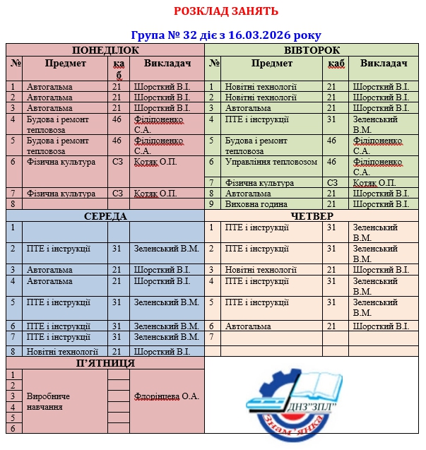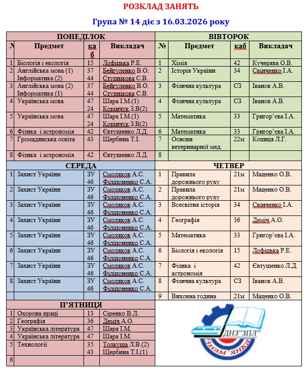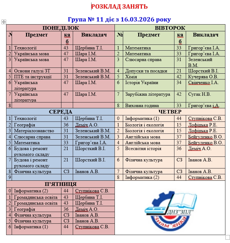 Розклад занять ГРУПА 11Завантажити ГРУПА 13Завантажити ГРУПА 14Завантажити ГРУПА 18Завантажити ГРУПА 19Завантажити ГРУПА 21Завантажити ГРУПА 23Завантажити ГРУПА 24Завантажити ГРУПА 29Завантажити ГРУПА 31Завантажити ГРУПА 32Завантажити ГРУПА 33Завантажити ГРУПА 34Завантажити ГРУПА 39Завантажити ГРУПА 113Завантажити ГРУПА 111Завантажити