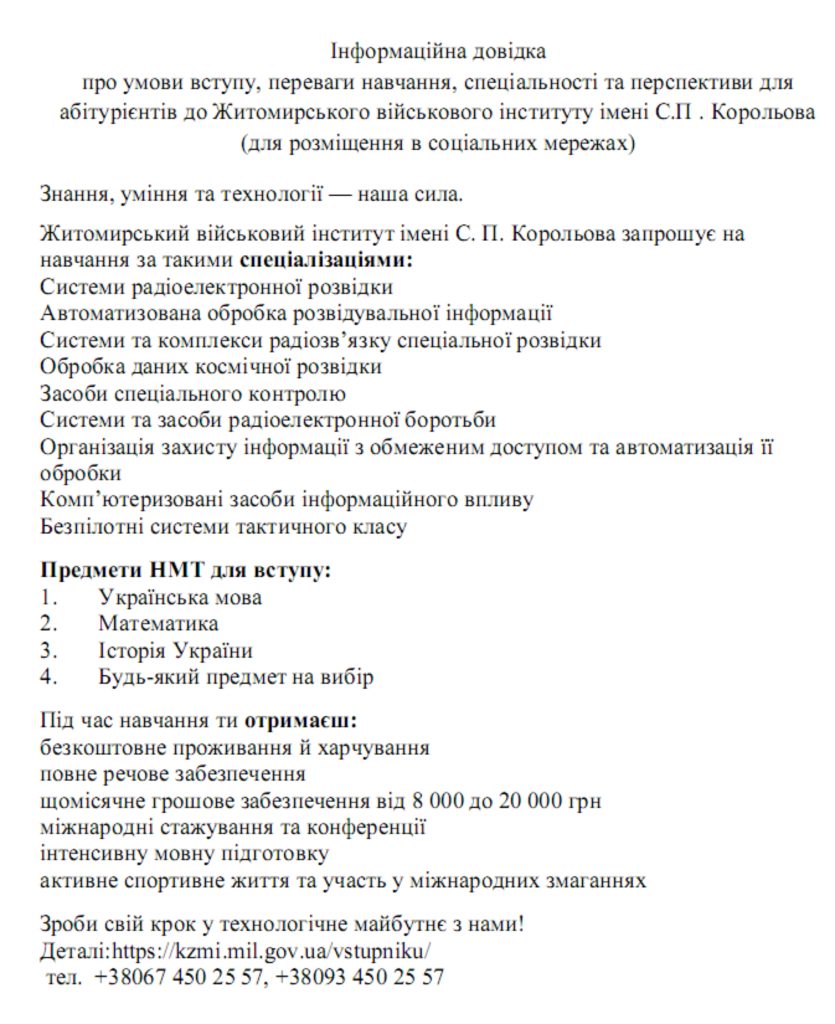 УНІВЕРСИТЕТ ЗДІЙСНЮЄ ПІДГОТОВКУ ФАХІВЦІВ ДЛЯ ПОТРЕБ: