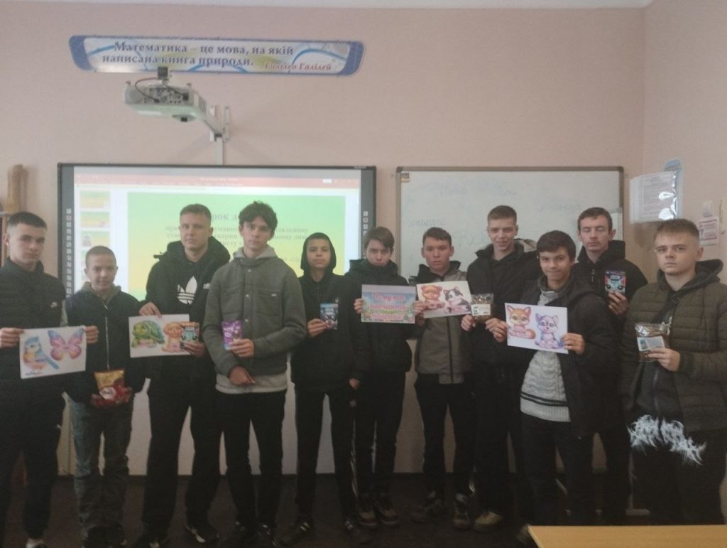 У рамках VI Міжнародного уроку доброти учні ДНЗ “Знам’янський профліцей” долучилися до важливого заходу, спрямованого на формування гуманного і відповідального ставлення до тварин. Під час уроку діти розмежували поняття “добро” та “доброта”, згадали народні прислів’я, приказки, які розкривають суть цих чеснот, та пограли у тематичну гру “Якщо людина добра…”, яка допомогла усвідомити риси доброзичливої особистості.