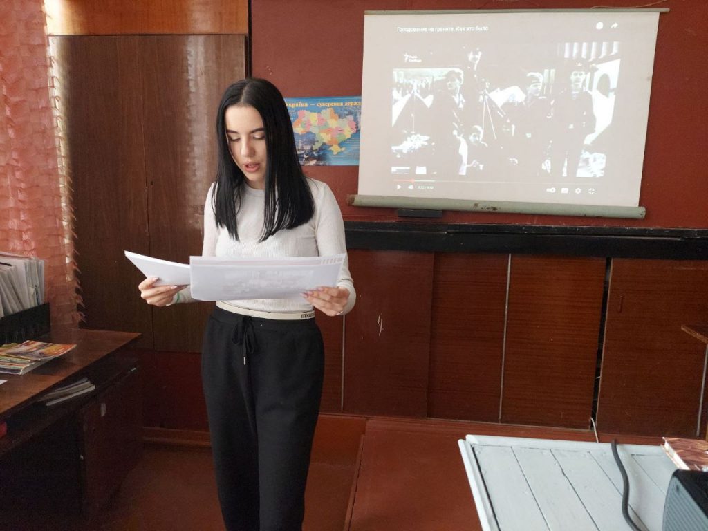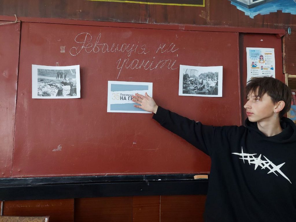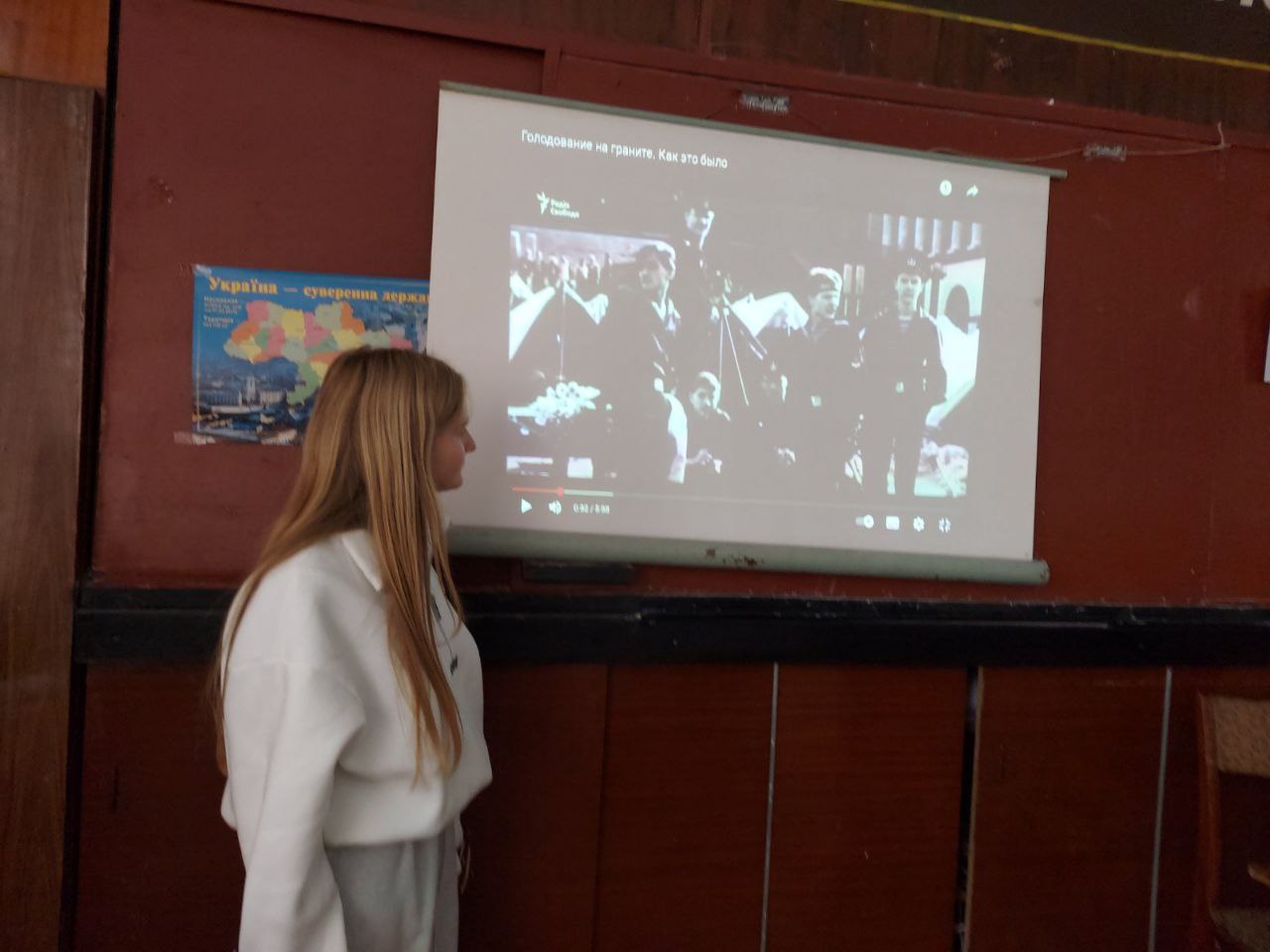 Учні переглянули документальний фільм, обговорили події студентського протесту 1990 року, ознайомилися з довідником УІНП “Перший Майдан: люди та події” та цікавими фактами про акцію.