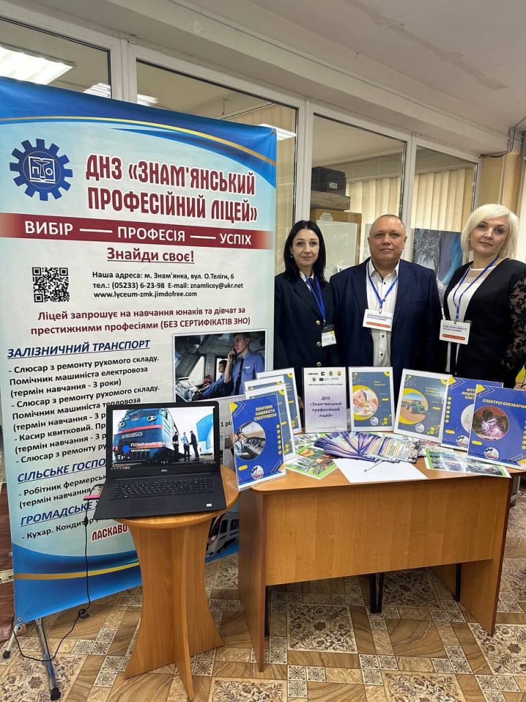 Команда ДНЗ “Знам’янський профліцей” презентувала заклад на Ярмарку вакансій «Нові можливості після служби», який став важливим майданчиком для спілкування, знайомств і можливостей для ветеранів, ветеранок та членів їх родин. Ліцей був представлений на локації «Освітні програми для ветеранів», де представники ліцею інформували ветеранів про: умови здобуття робітничих професій, що користуються попитом на ринку праці; короткострокові курси; можливості перекваліфікації і навчання з урахуванням усіх потреб; особливості вступу, пільги для учасників БД, членів їх сімей; соціальні гарантії; можливість працевлаштування у закладі.