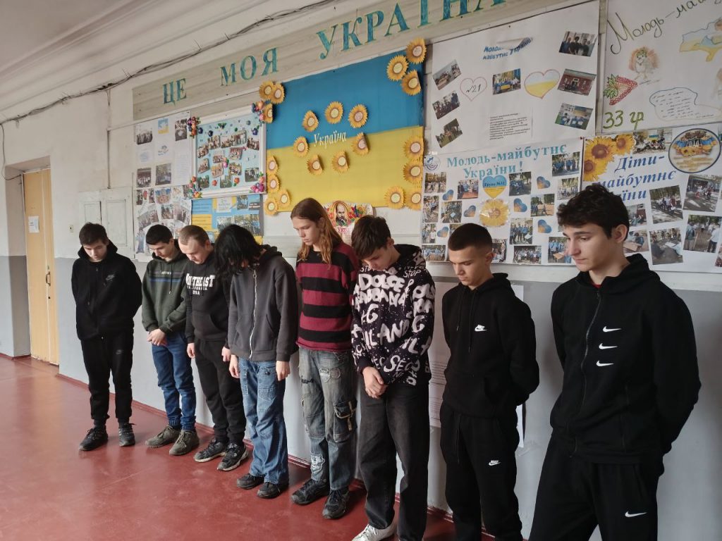 У ДНЗ «Знам’янський професійний ліцей» кожен навчальний день розпочинається з тихого, але надзвичайно важливого ритуалу — хвилини мовчання. Це глибокий духовний жест, що нагадує: мирне небо над нами — це результат сміливості, мужності та самопожертви тисяч Героїв. Вона присвячена всім, хто віддав життя у російсько-українській війні, Героям Небесної Сотні, мирним людям, які стали жертвами агресії, а також українцям, загиблим у трагічних періодах нашої історії.