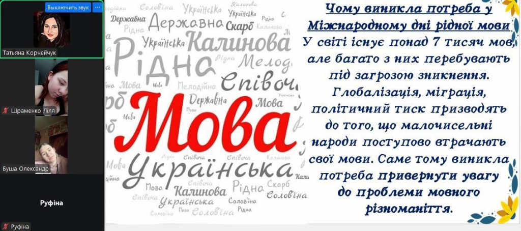 До Міжнародного дня рідної мови зі студентами ДНЗ “Знам’янський профліцей” було проведено низку пізнавальних і творчих заходів, спрямованих на утвердження поваги до рідного слова, формування мовної культури та національної свідомості молоді.