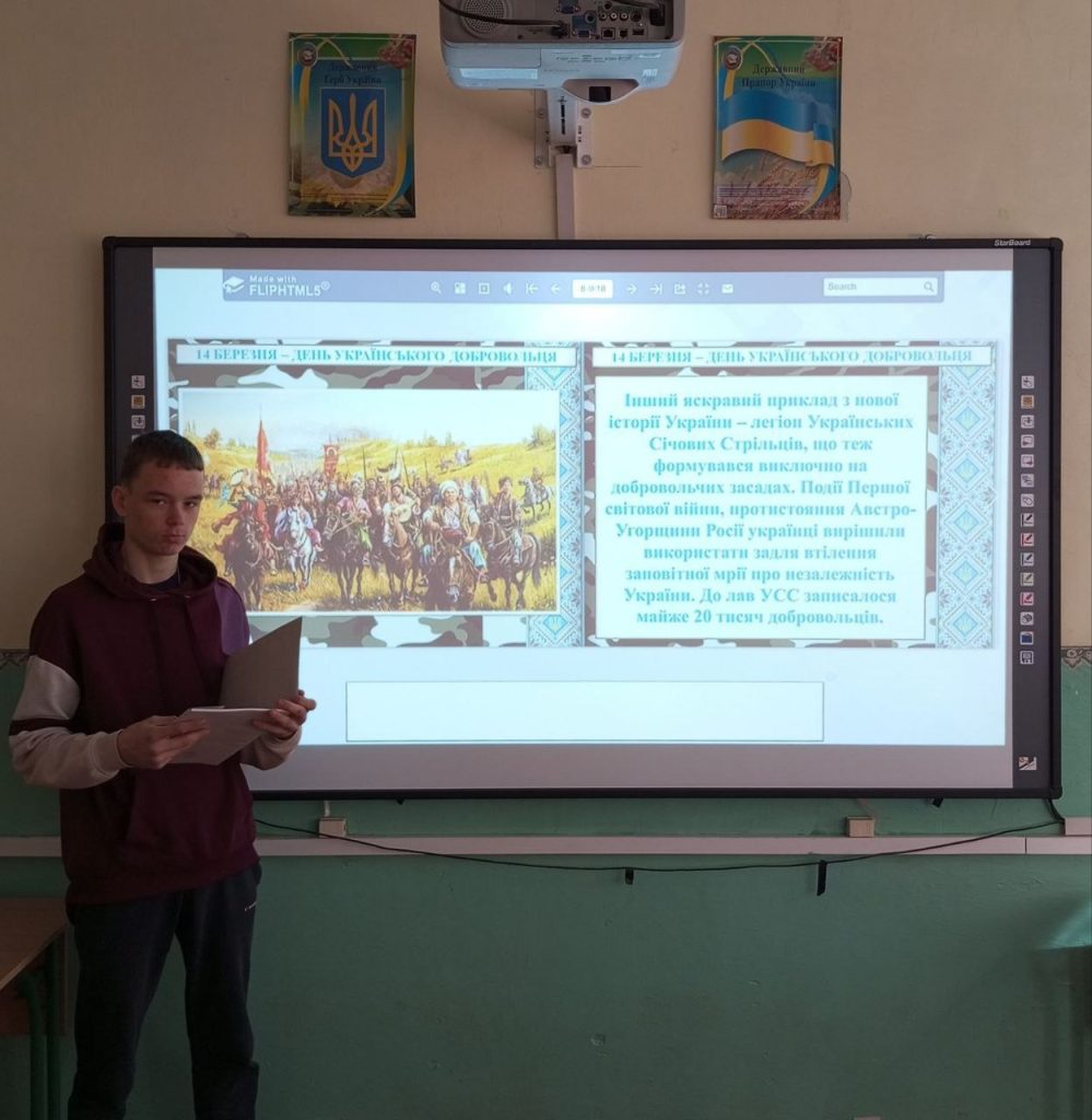 Учасники виконували інтерактивні завдання, розгадували загадки та ребуси, що допомогло краще засвоїти важливу інформацію. Хвилиною мовчання згадали усіх загиблих Героїв. Усі дійшли спільного висновку: готовність українців добровільно стати на захист своєї Батьківщини була і залишається важливою запорукою нашої сили, єдності та майбутньої Перемоги.