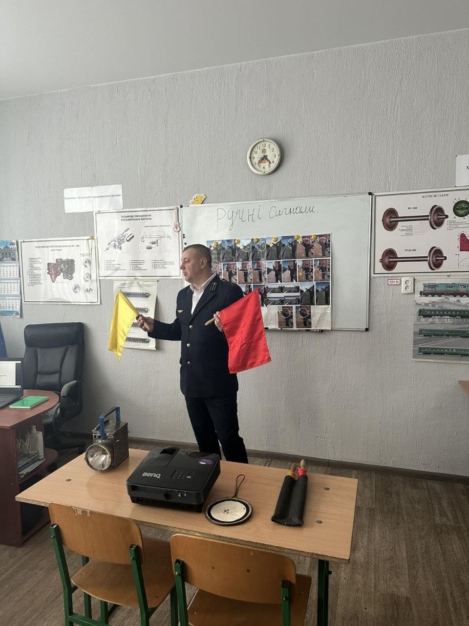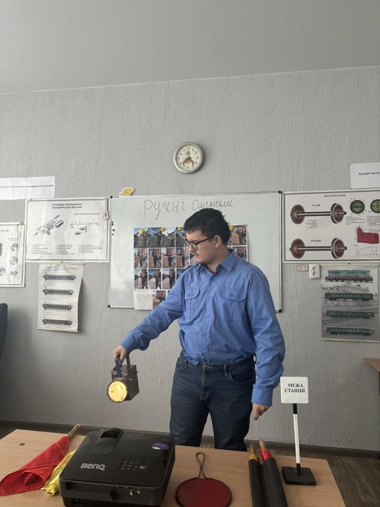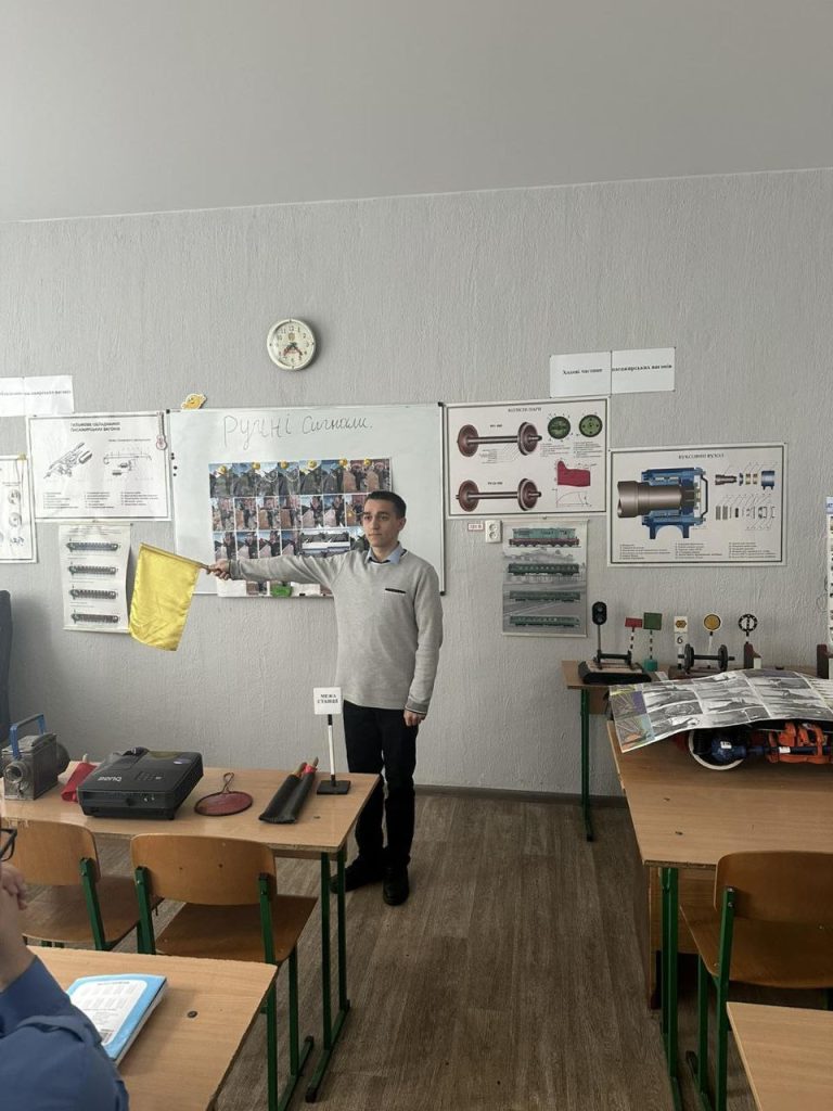 Урок-майстер-клас «Подання ручних сигналів на залізничному транспорті», провів викладач В. Зеленський. Повторили види сигналів, відпрацювали їх правильне застосування в умовах, максимально наближених до реальних.